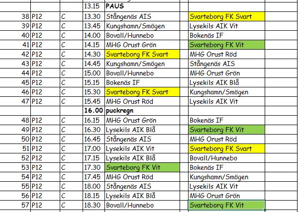 Uppdaterat spelschema Höstrusket. Vi har första matchen 13:30 vilket innebär att vi samlas kl. 12:45.