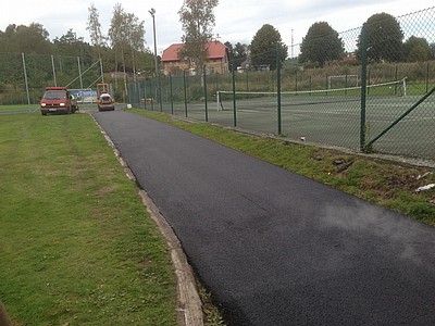 Här kommer en liten rapport och bilder med gänget som nu färdigställt de ytor som var kvar att asfaltera runt tennisbanan till konstgräsplanen. Snyggt och propert inför vintern.