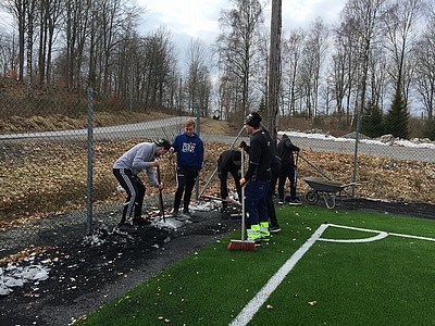 kommer fram i tö...o måste tas om hand. Under söndag eftermiddag tar föreningens herrseniorer borstar, skyfflar o maskiner i hand för att få granulatet på plan igen😊